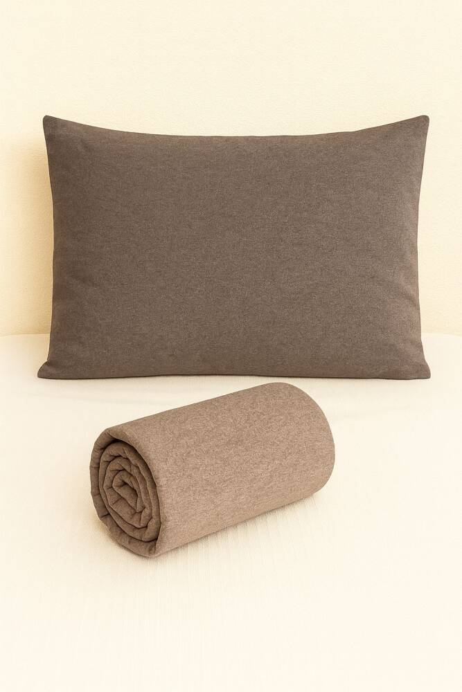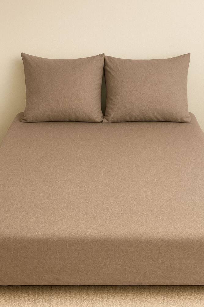 %100 Pamuk 63 Tel Çarşaf ve Yastık Kılıfı Seti 160x200 - Kahve