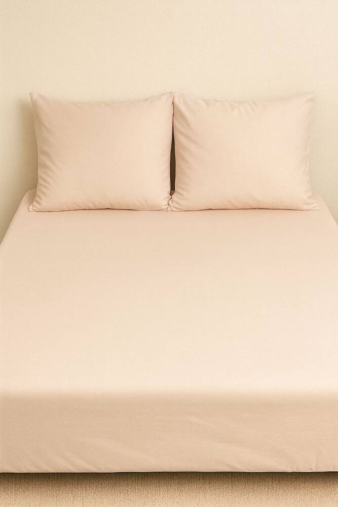 %100 Pamuk 63 Tel Çarşaf ve Yastık Kılıfı Seti 160x200 - Krem