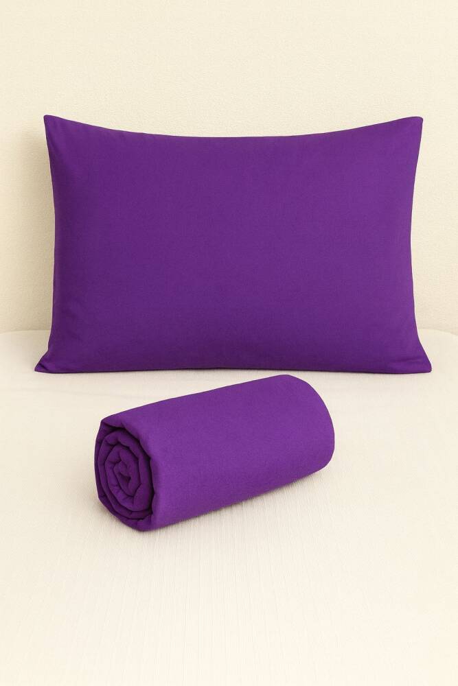 %100 Pamuk 63 Tel Çarşaf ve Yastık Kılıfı Seti 160x200 - Mor
