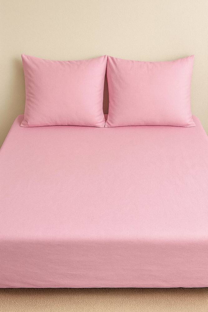 %100 Pamuk 63 Tel Çarşaf ve Yastık Kılıfı Seti 160x200 - Pudra