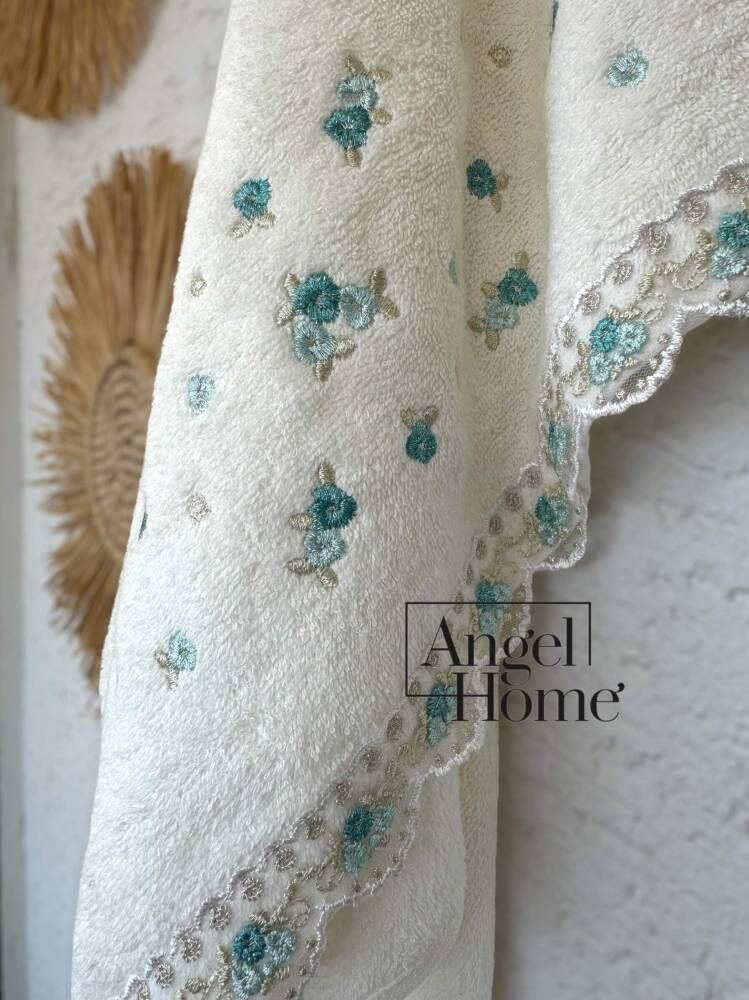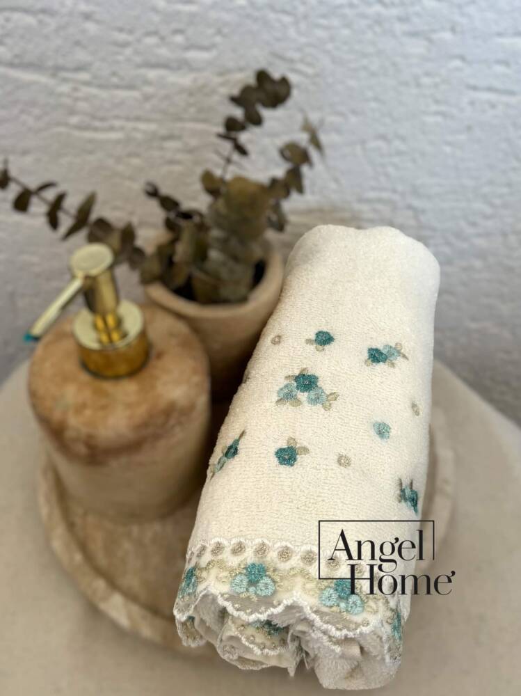 %100 Pamuk Yüz Havlusu Nakışlı ve Çiçek Motifli - Mavi