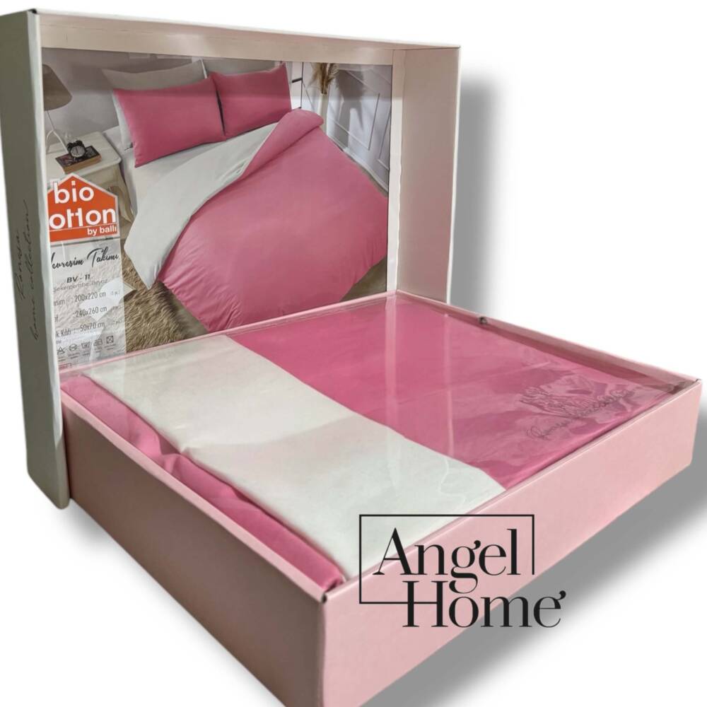 Çift Kişilik %100 Pamuk Ranforce Nevresim Takımı - Şekerpembe/Krem