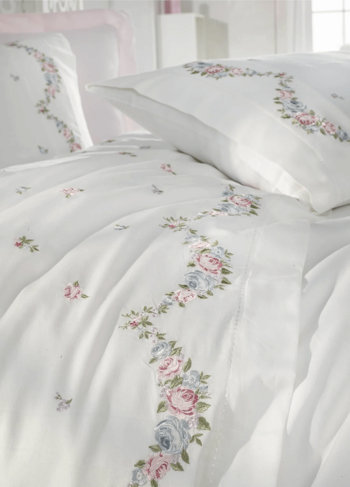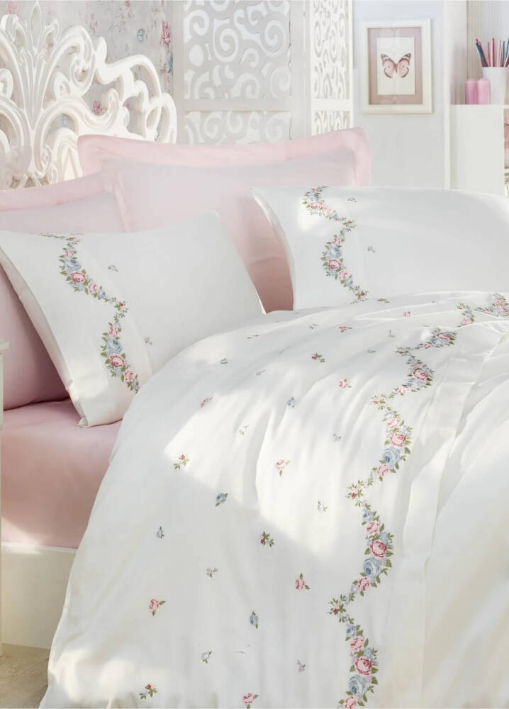 Yatak odanıza şıklık ve zarafet katacak %100 pamuk saten ince nakış detaylı nevresim takımı, yumuşacık dokusuyla konforlu bir uyku deneyimi sunar. 1. sınıf iplik kalitesi sayesinde uzun ömürlü ve dolgun yapısıyla formunu korur, sertleşme yapmaz.