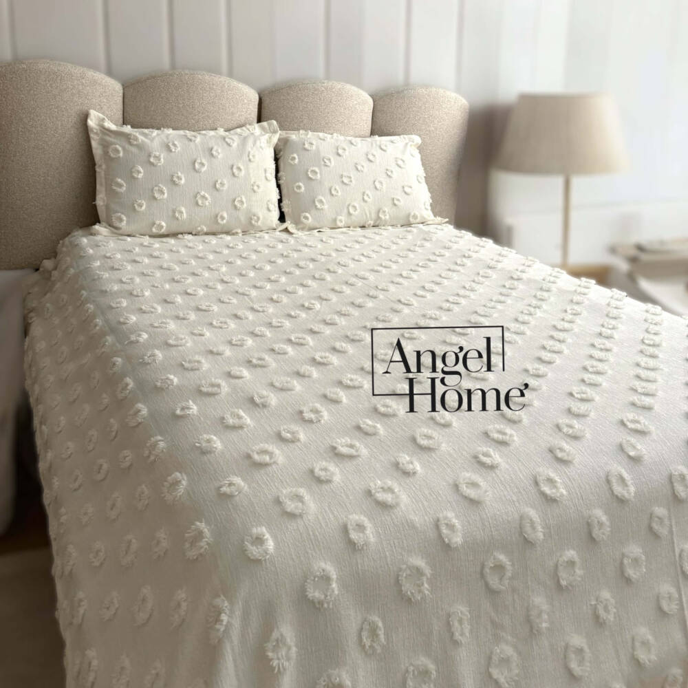 Ponpon Tek Kişilik Yatak Örtüsü – Taş Rengi, 180x250 cm boyutunda, 1 adet yastıklı şık ve modern bir yatak örtüsüdür. Pamuk ve polyester karışımı kumaşı, kırışmaz özellikte olup, uzun süreli kullanımda bile formunu korur. Ponpon detayları yatak odanızı zarif ve şık bir şekilde tamamlar. Hem konforlu hem de dayanıklı olan bu örtü, kolay bakım sağlar ve her mevsim rahatlıkla kullanılabilir. Yatak odanıza zarif bir dokunuş katmak için ideal bir tercihtir.