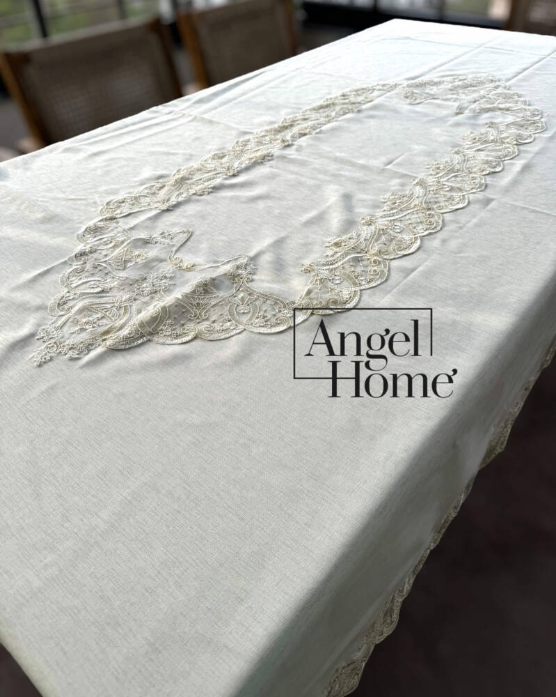 Royal Home Keten Kumaş Fransız Dantelli Leke Tutmaz Dertsiz Masa Örtüsü