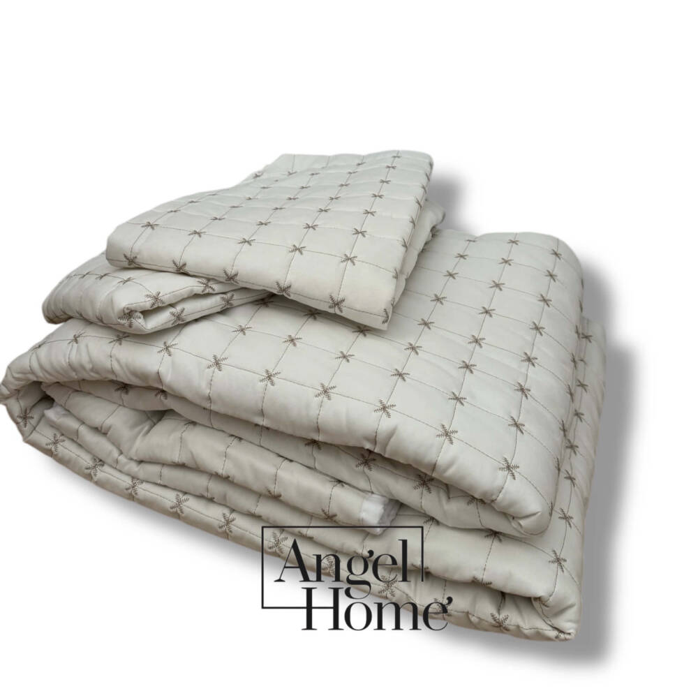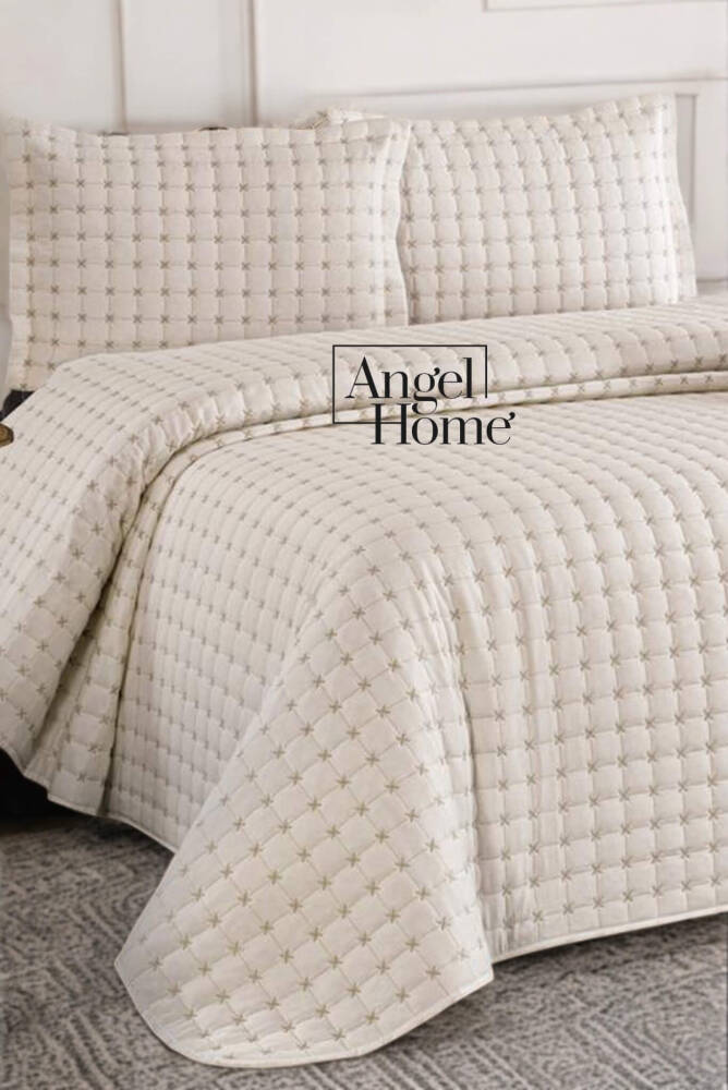 Yıldız İşlemeli Çift Kişilik Yatak Örtüsü 240x260 cm - Krem