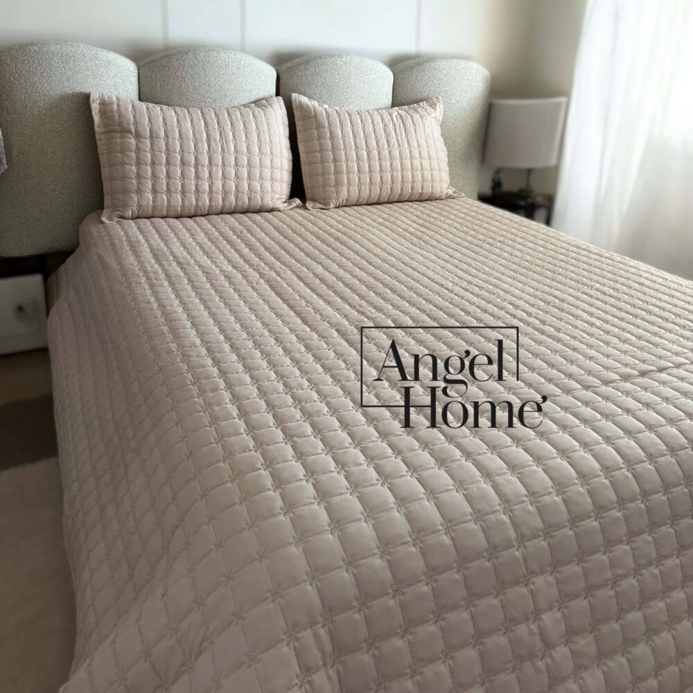 Yıldız İşlemeli Tek Kişilik Yatak Örtüsü 160x220 cm - Bej